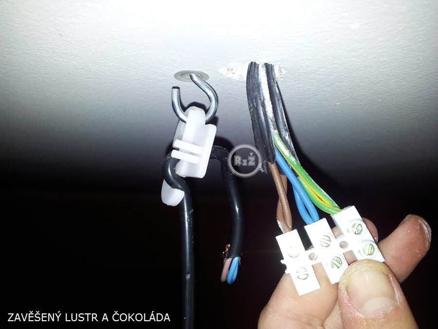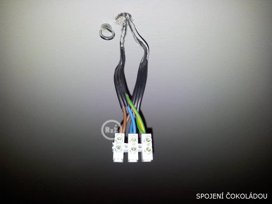 Na konci kabelu jsem připojoval světlo bez smyčky. O to to bylo jednodušší. Zřejmě se jedná o nejčastěji se vyskytující typ připojení světla či lustru vůbec. Přikládám také fotografii z terénu.
