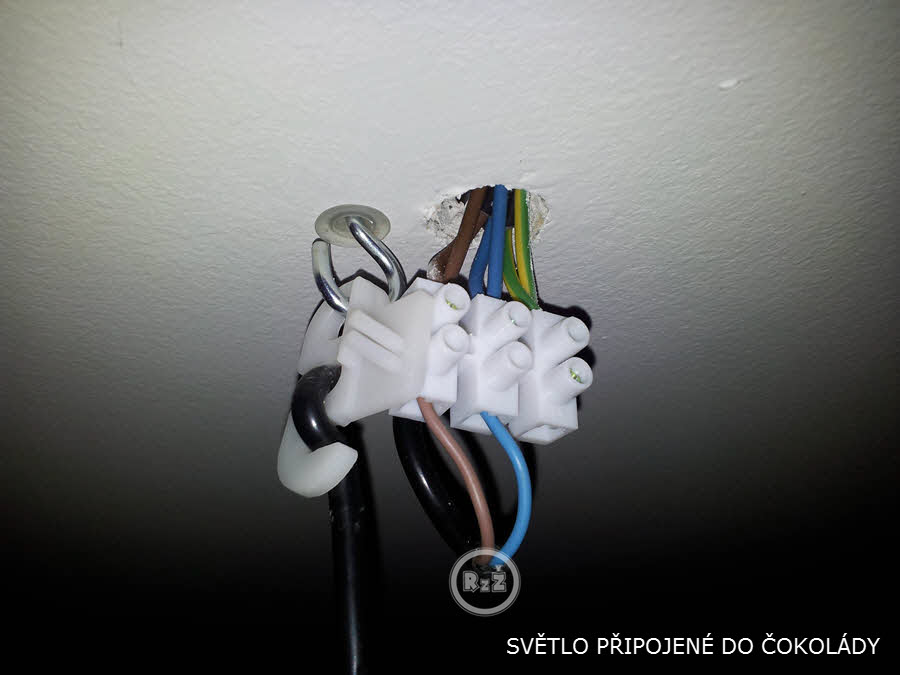 Mám dobrý pocit, když se dráty nijak v čokoládě nehýbají. Po připojení a zkontrolovaném upevnění zatáhněte krytku světla ke stropu a máte hotovo. Světla jsou připojena a svítí!