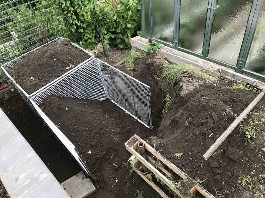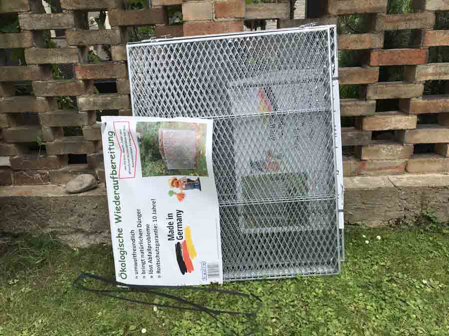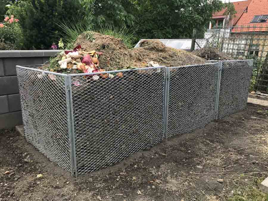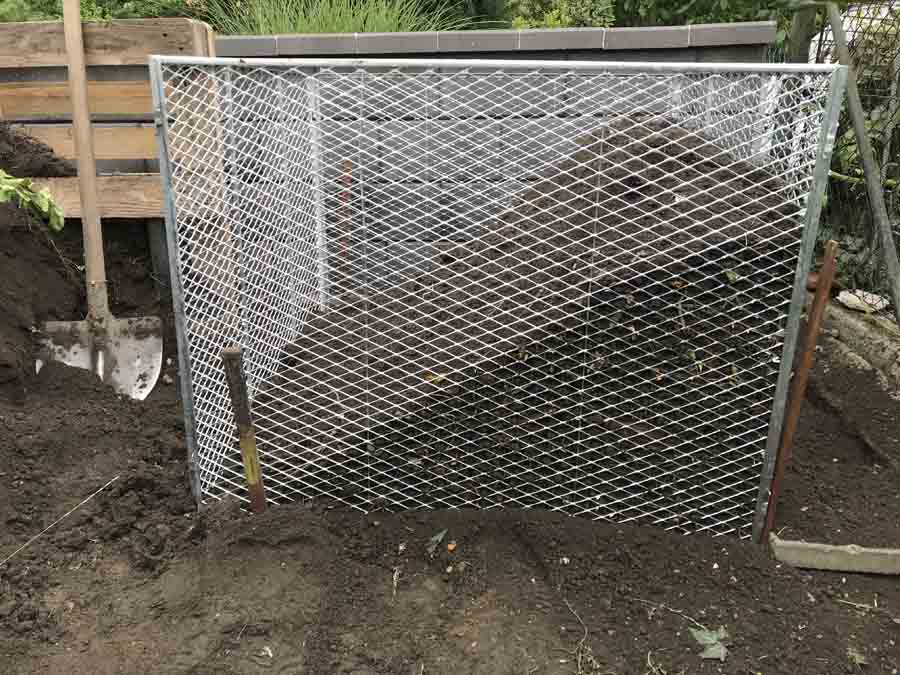 Můj tchán je velmi zručný – dal si tu práci a udělal kompostér z kari sítí. Je to taky jedna z těch lepších variant – problém ale je v tom, že musíte již přidat ruku k dílu a mít vybavení. Kari sítě si nařezal dle potřebného rozměru a protože měl klasickou kari síť, kde jsou oka 10 x 10 cm dal 2 kari sítě za sebe, aby mu hlína nepropadávala. Kari sítě takto svázal drátem. Funguje to velmi dobře, ale jak jsem již uvedl, je to pracné.