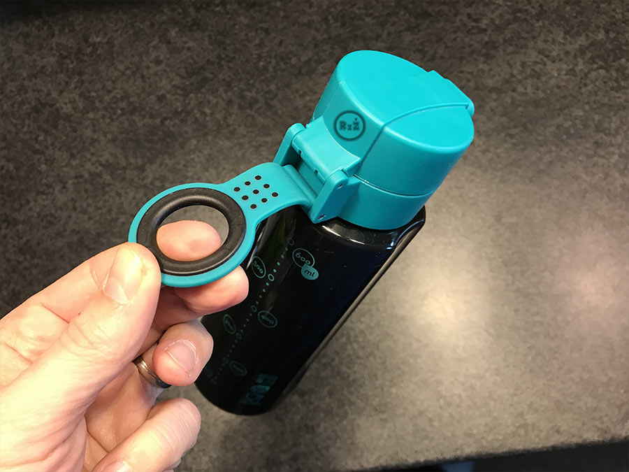 - Láhev má svůj úchyt, za který mohou děti láhev držet.