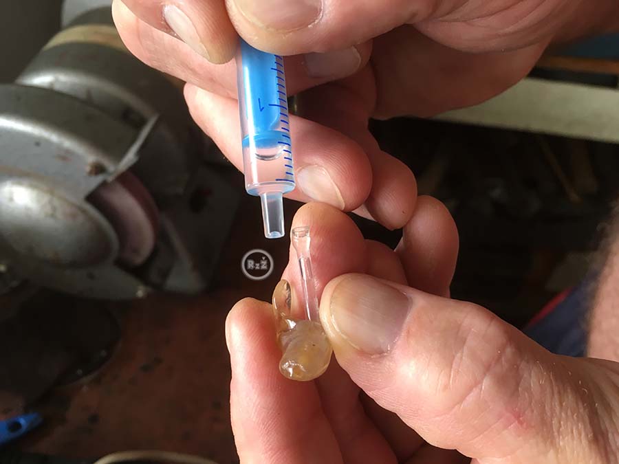 My jsme naprosto ucpané silikonové pecky s hadičkou oddělili od strojku a následně prošťouchli vpuštěním vzduchu kompresorem. Pak jsme do malinké skleničky vložili líh a silikonové pecky s hadičkou v něm řádně protřepali. Následně znovu profoukli kompresorem do sucha. Znovu jsme nasadili na strojek. Prababička začala slyšet 🙂