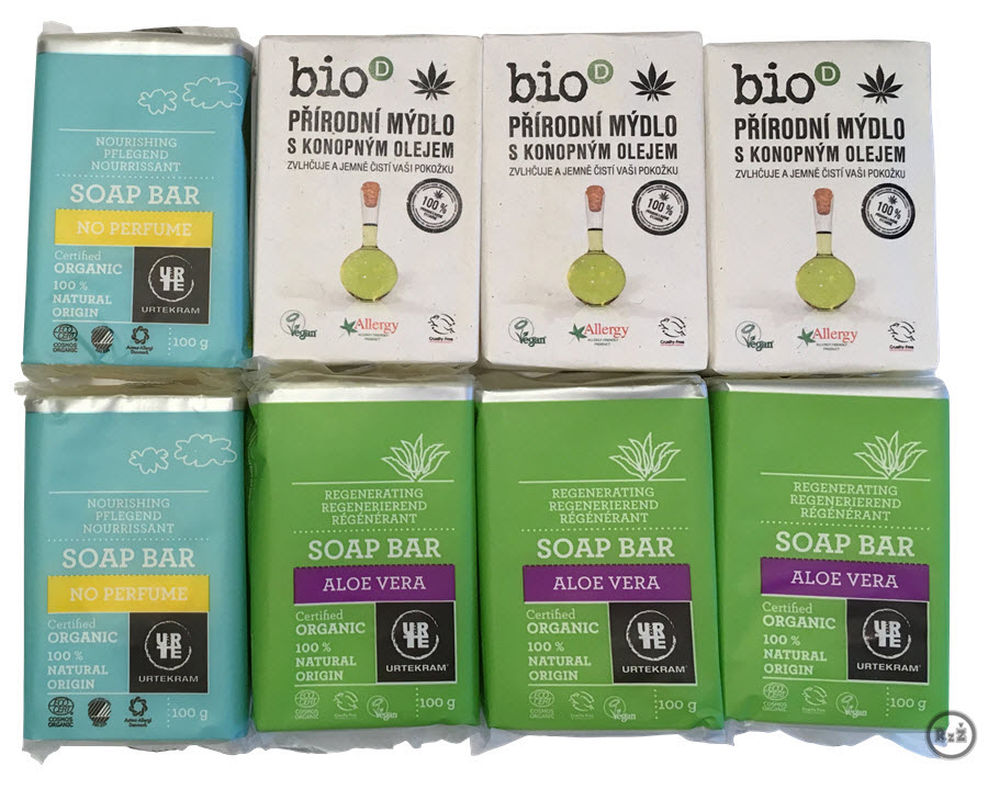 - Bio mýdlo s konopnými otrubami – (bio-D, 95 g). Dle našeho názoru nevhodné pro děti. Dcera se s ním nechtěla umývat. Hrubší při použití – otruby pomáhají odstranit odpad na kůži. Nemusí někomu vyhovovat. Obě mýdla od bio-D mají výbornou cenu za účinnost, kterou hned při prvním umytí poznáte. Velkou výhodou těchto mýdel je jejich výdrž. S těmito mýdly ušetříte a ještě budete myslet na své zdraví.